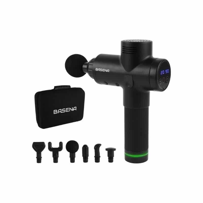 De Basena massage gun is van het type dat het meest wordt verkocht en aangeboden in Nederland. Het gaat om een Chinese import van een model met 30 snelheden en 6 opzetstukken. Bij het geheel wordt een handige bewaarkoffer geleverd. Je kan met de Basena massage gun goed een ontspannende massage geven (of krijgen). Met de point head massage kop kun je tevens spierknopen uit het lichaam masseren. Voor beginners en mensen die een ontspannende massage wensen, is het een oké apparaat.