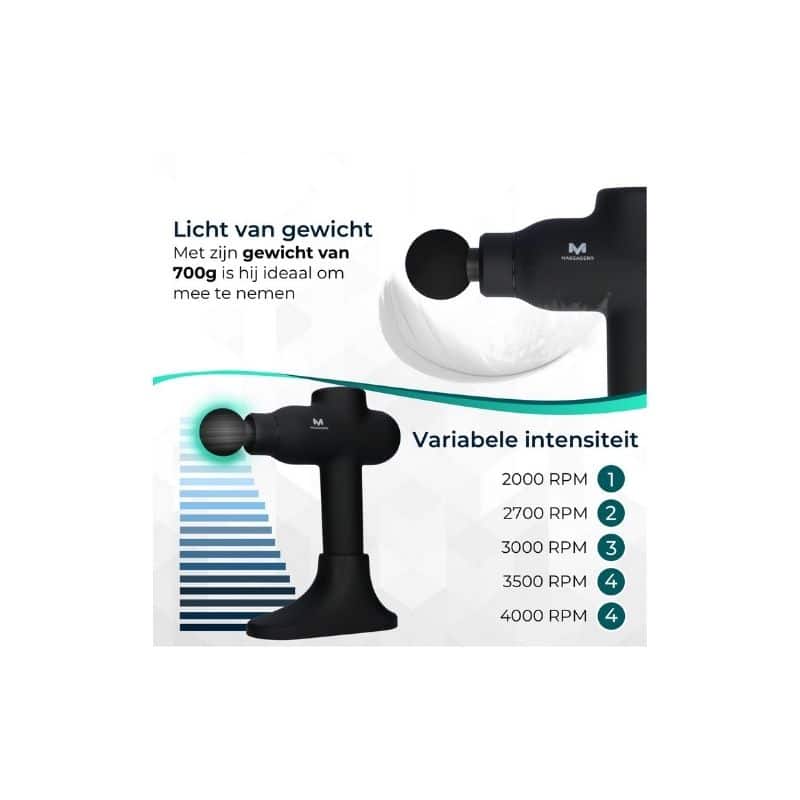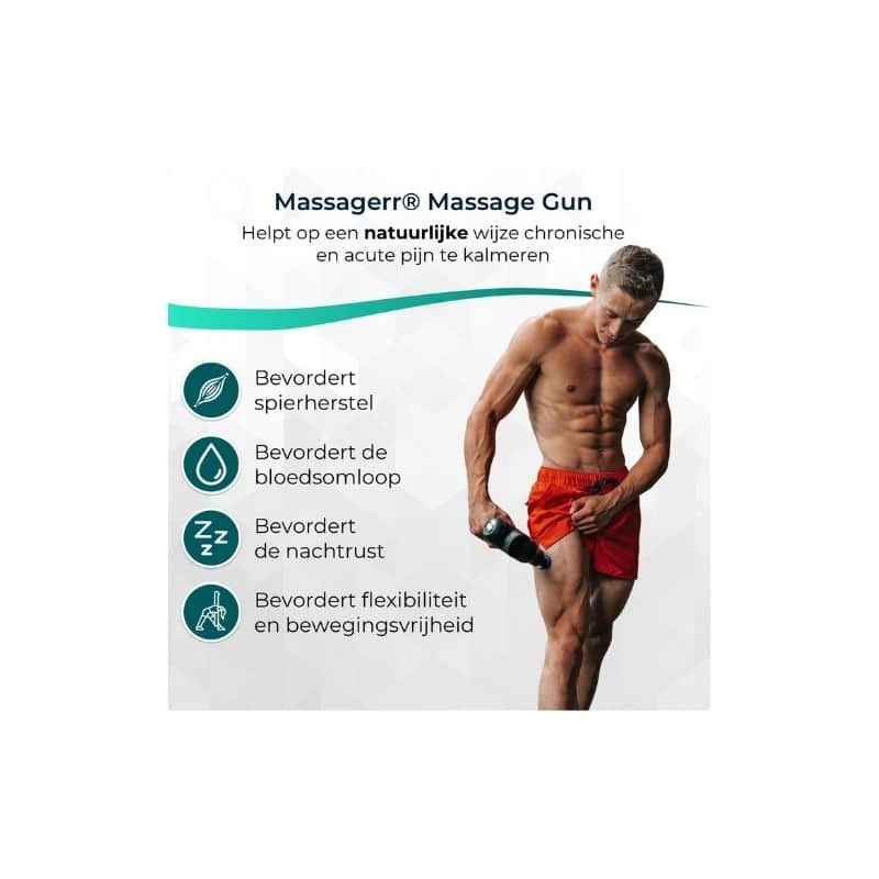 De Massagerr® Massage Gun Professioneel is een hele goede massage gun die doet wat het belooft. Het apparaat zit in een stevige verpakking en heeft een mooi design. Er is gekozen voor de juiste set opzetkopjes, waardoor je alle soorten massages kan uitvoeren. De luxe oplaad- en bewaarstandaard maakt het apparaat helemaal af. Wat ik erg fijn vind is dat je ook een krachtige massage kan geven, zonder dat de motor afslaat of het apparaat gaat haperen. Hier merk je meteen dat het een kwaliteitsproduct betreft. De gebruiksaanwijzing is wel wat summier. Ik kan dit apparaat zeker aanraden. Qua prijs/kwaliteit krijg je wel een echt goed product dat precies doet wat je wil van een massage gun.